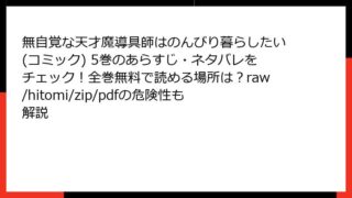 女性マンガ・コミック 無自覚な天才魔導具師はのんびり暮らしたい(コミック) 5巻のあらすじ・ネタバレをチェック!全巻無料で読める場所は?raw/hitomi/zip/pdfの危険性も解説 無自覚な天才魔導具師はのんびり暮らしたい(コミック)5巻:帰国後の穏やかな日常と新たな危機『無自覚な天才魔導具師はのんびり暮らしたい』は、異世界ファンタジーとして人気を博すコミックシリーズです。主人公フレアの無自覚な天才ぶりと、のんびりとし... 2025.12.10 女性マンガ・コミック無自覚な天才魔導具師はのんびり暮らしたい(コミック)