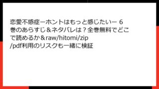 恋愛不感症ーホントはもっと感じたいー 9巻のあらすじ詳解人気の恋愛漫画「恋愛不感症ーホントはもっと感じたいー」の9巻は、主人公・星名朱里と浅倉課長の関係がさらに深まる重要な展開を迎えます。この巻では、朱里の内面的な成長や課長の過去との決別が...