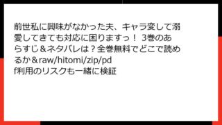 前世私に興味がなかった夫、キャラ変して溺愛してきても対応に困りますっ! 前世私に興味がなかった夫、キャラ変して溺愛してきても対応に困りますっ! 3巻のあらすじ&ネタバレは?全巻無料でどこで読めるか&raw/hitomi/zip/pdf利用のリスクも一緒に検証