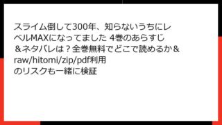 スライム倒して300年、知らないうちにレベルMAXになってました スライム倒して300年、知らないうちにレベルMAXになってました 4巻のあらすじ&ネタバレは?全巻無料でどこで読めるか&raw/hitomi/zip/pdf利用のリスクも一緒に検証