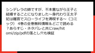 シンデレラの姉ですが、不本意ながら王子と結婚することになりました~身代わり王太子妃は離宮でスローライフを満喫する~(コミック) シンデレラの姉ですが、不本意ながら王子と結婚することになりました~身代わり王太子妃は離宮でスローライフを満喫する~(コミック) 4巻の全巻無料情報&どこで読める?あらすじ・ネタバレと共にraw/hitomi/zip/pdfの落とし穴も検証