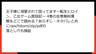 王子様に溺愛されて困ってます~転生ヒロイン、乙女ゲーム奮闘記~ 2巻のあらすじを詳しく解説この記事では、人気コミック「王子様に溺愛されて困ってます~転生ヒロイン、乙女ゲーム奮闘記~」の2巻について、詳しいあらすじをブログ形式でお届けします。...