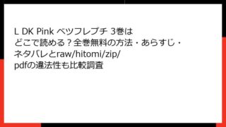 L DK Pink ベツフレプチ L DK Pink ベツフレプチ 3巻はどこで読める?全巻無料の方法・あらすじ・ネタバレとraw/hitomi/zip/pdfの違法性も比較調査 L DK Pink ベツフレプチ 3巻の魅力的なあらすじ渡辺あゆ先生の大人気シリーズ『L・DK』の続編として、ファンの間で話題沸騰中の『L DK Pink ベツフレプチ』。3巻では、主人公・葵と柊聖の結婚後の新婚生活が描かれ、甘い日常の中に... 2025.12.13 L DK Pink ベツフレプチ少女マンガ・コミック
