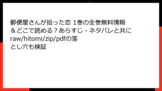 BLマンガ・コミック 郵便屋さんが拾った恋 1巻の全巻無料情報&どこで読める?あらすじ・ネタバレと共にraw/hitomi/zip/pdfの落とし穴も検証 郵便屋さんが拾った恋 1巻 詳細あらすじレビュー海辺の小さな町を舞台に、優しく心温まるBLストーリーが展開する『郵便屋さんが拾った恋』第1巻。作者のRenéさんが描く、甘え下手な高校生と包容力たっぷりの郵便屋さんとの出会いから生まれる純愛が... 2025.12.14 BLマンガ・コミック郵便屋さんが拾った恋