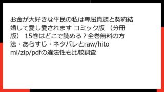 お金が大好きな平民の私は卑屈貴族と契約結婚して愛し愛されます コミック版 (分冊版) お金が大好きな平民の私は卑屈貴族と契約結婚して愛し愛されます コミック版 (分冊版) 15巻はどこで読める?全巻無料の方法・あらすじ・ネタバレとraw/hitomi/zip/pdfの違法性も比較調査