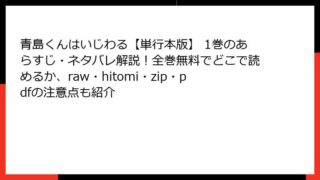 女性マンガ・コミック 青島くんはいじわる【単行本版】 1巻のあらすじ・ネタバレ解説!全巻無料でどこで読めるか、raw・hitomi・zip・pdfの注意点も紹介 青島くんはいじわる 1巻:年の差恋愛の甘酸っぱい始まりに胸キュン必至!こんにちは、漫画好きのブロガーです! 今日は、吉井ユウ先生の人気ラブコメディ『青島くんはいじわる【単行本版】 1巻』のあらすじを、たっぷり詳しくお届けします。この作品は、... 2025.12.15 女性マンガ・コミック青島くんはいじわる【単行本版】