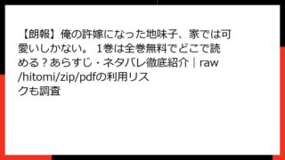【朗報】俺の許嫁になった地味子、家では可愛いしかない。 4巻のあらすじを詳しく解説この記事では、人気漫画「【朗報】俺の許嫁になった地味子、家では可愛いしかない。」の4巻について、詳細なあらすじをブログ形式でお届けします。ネタバレを含む内容な...