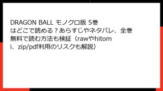 DRAGON BALL モノクロ版 DRAGON BALL モノクロ版 5巻はどこで読める?あらすじやネタバレ、全巻無料で読む方法も検証(rawやhitomi、zip/pdf利用のリスクも解説)