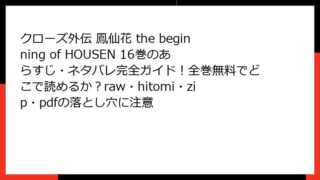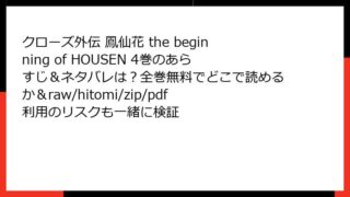 クローズ外伝 鳳仙花 the beginning of HOUSEN クローズ外伝 鳳仙花 the beginning of HOUSEN 4巻のあらすじ&ネタバレは?全巻無料でどこで読めるか&raw/hitomi/zip/pdf利用のリスクも一緒に検証