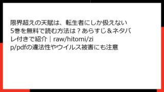 少年マンガ・コミック 限界超えの天賦は、転生者にしか扱えない 5巻を無料で読む方法は?あらすじ&ネタバレ付きで紹介|raw/hitomi/zip/pdfの違法性やウイルス被害にも注意 限界超えの天賦は、転生者にしか扱えない 5巻 徹底あらすじ!英雄の誕生と迫る闇人気異世界ファンタジーコミック「限界超えの天賦は、転生者にしか扱えない ―オーバーリミット・スキルホルダー―」の5巻が、ますます熱い展開でファンを魅了しています。... 2025.12.16 少年マンガ・コミック限界超えの天賦は、転生者にしか扱えない