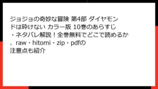 ジョジョの奇妙な冒険 第4部 ダイヤモンドは砕けない カラー版 ジョジョの奇妙な冒険 第4部 ダイヤモンドは砕けない カラー版 10巻のあらすじ・ネタバレ解説!全巻無料でどこで読めるか、raw・hitomi・zip・pdfの注意点も紹介