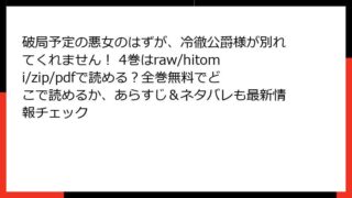 少女マンガ・コミック 破局予定の悪女のはずが、冷徹公爵様が別れてくれません! 4巻はraw/hitomi/zip/pdfで読める?全巻無料でどこで読めるか、あらすじ&ネタバレも最新情報チェック 『破局予定の悪女のはずが、冷徹公爵様が別れてくれません!』4巻 詳細あらすじ(ネタバレあり)これまでの物語を簡単に振り返る主人公のグレースは、前世で読んだ小説の強欲で男好きな悪女に転生してしまった。原作では冷徹公爵ゼインを弄んで捨て、ヒロイ... 2025.12.17 少女マンガ・コミック破局予定の悪女のはずが、冷徹公爵様が別れてくれません!
