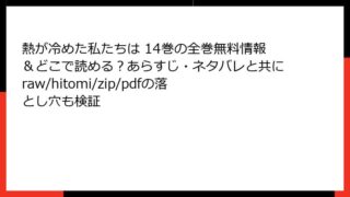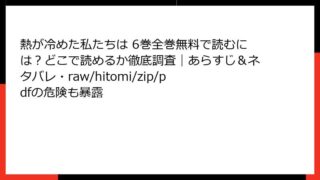 熱が冷めた私たちは 6巻 詳細あらすじこの記事では、人気コミック「熱が冷めた私たちは」の6巻に焦点を当てて、詳細なあらすじを紹介します。セックスレスや夫婦のすれ違いをテーマにした切ないラブストーリーとして、多くの読者を引きつけている作品です...