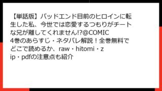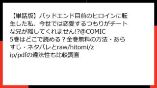 【単話版】バッドエンド目前のヒロインに転生した私、今世では恋愛するつもりがチートな兄が離してくれません!?@COMIC 【単話版】バッドエンド目前のヒロインに転生した私、今世では恋愛するつもりがチートな兄が離してくれません!?@COMIC 5巻はどこで読める?全巻無料の方法・あらすじ・ネタバレとraw/hitomi/zip/pdfの違法性も比較調査