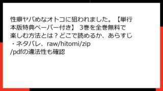 BLマンガ・コミック 性癖ヤバめなオトコに狙われました。【単行本版特典ペーパー付き】 1巻のあらすじ・ネタバレ完全ガイド!全巻無料でどこで読めるか?raw・hitomi・zip・pdfの落とし穴に注意