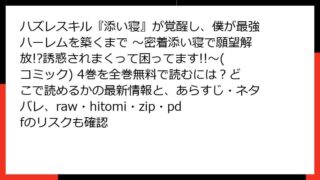 ハズレスキル『添い寝』が覚醒し、僕が最強ハーレムを築くまで ~密着添い寝で願望解放!?誘惑されまくって困ってます!!~(コミック) ハズレスキル『添い寝』が覚醒し、僕が最強ハーレムを築くまで ~密着添い寝で願望解放!?誘惑されまくって困ってます!!~(コミック) 4巻を全巻無料で読むには?どこで読めるかの最新情報と、あらすじ・ネタバレ、raw・hitomi・zip・pdfのリスクも確認