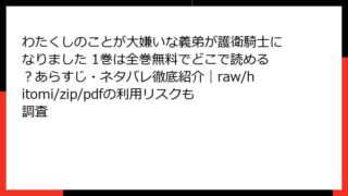 わたくしのことが大嫌いな義弟が護衛騎士になりました わたくしのことが大嫌いな義弟が護衛騎士になりました 1巻は全巻無料でどこで読める?あらすじ・ネタバレ徹底紹介|raw/hitomi/zip/pdfの利用リスクも調査 『わたくしのことが大嫌いな義弟が護衛騎士になりました 1巻』詳しいあらすじ作品の基本情報と魅力この作品は、ファンタジー世界を舞台にしたラブコメディで、タイトルからは「嫌われ姉と冷たい義弟」の関係を想像しますが、実際は真逆の「溺愛義弟×鈍感強... 2025.12.19 わたくしのことが大嫌いな義弟が護衛騎士になりました少女マンガ・コミック