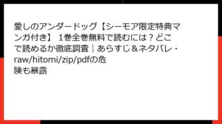 BLマンガ・コミック 愛しのアンダードッグ【シーモア限定特典マンガ付き】 1巻全巻無料で読むには?どこで読めるか徹底調査|あらすじ&ネタバレ・raw/hitomi/zip/pdfの危険も暴露 愛しのアンダードッグ 1巻のあらすじ詳解この記事では、みよしあやと先生の人気BL漫画『愛しのアンダードッグ』1巻のあらすじを詳しく掘り下げて紹介します。仕込み屋と捨て犬系男子の出会いが織りなす、予想外の甘きゅんラブストーリー。ネタバレを最小... 2025.12.20 BLマンガ・コミック愛しのアンダードッグ【シーモア限定特典マンガ付き】