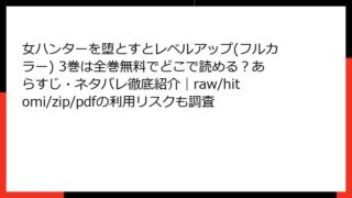 女ハンターを堕とすとレベルアップ(フルカラー) 女ハンターを堕とすとレベルアップ(フルカラー) 3巻は全巻無料でどこで読める?あらすじ・ネタバレ徹底紹介|raw/hitomi/zip/pdfの利用リスクも調査