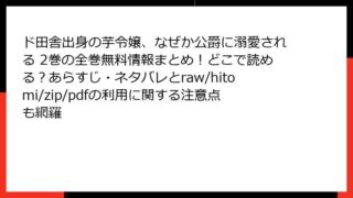 ド田舎出身の芋令嬢、なぜか公爵に溺愛される ド田舎出身の芋令嬢、なぜか公爵に溺愛される 2巻の全巻無料情報まとめ!どこで読める?あらすじ・ネタバレとraw/hitomi/zip/pdfの利用に関する注意点も網羅