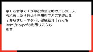 少女マンガ・コミック 芋くさ令嬢ですが悪役令息を助けたら気に入られました 6巻は全巻無料でどこで読める?あらすじ・ネタバレ徹底紹介|raw/hitomi/zip/pdfの利用リスクも調査