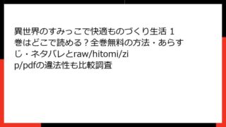 少年マンガ・コミック 異世界のすみっこで快適ものづくり生活 1巻はどこで読める?全巻無料の方法・あらすじ・ネタバレとraw/hitomi/zip/pdfの違法性も比較調査