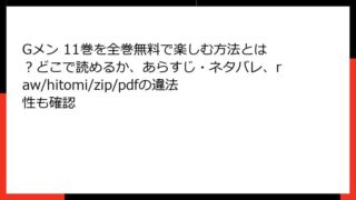 Gメン Gメン 11巻を全巻無料で楽しむ方法とは?どこで読めるか、あらすじ・ネタバレ、raw/hitomi/zip/pdfの違法性も確認 チュートリアルが始まる前に 1巻のあらすじこの巻では、主人公の清水が大好きなRPGの世界に転生する物語が始まります。クソ雑魚の中ボスとして生まれ変わった彼が、姉の運命を変えるために奮闘する様子が描かれています。理不尽なシナリオを攻略する過程... 2026.01.01 Gメン少年マンガ・コミック