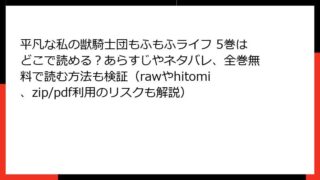 女性マンガ・コミック 平凡な私の獣騎士団もふもふライフ 5巻はどこで読める?あらすじやネタバレ、全巻無料で読む方法も検証(rawやhitomi、zip/pdf利用のリスクも解説) 3次元お断りな私の契約結婚 分冊版 17巻のあらすじゲームの王子キャラにガチ恋するあまり、現実世界の男に全く興味がない高杉杏奈。彼女の日常は、仕事では敏腕美人秘書として活躍しつつ、プライベートでは推しにすべてを捧げる隠れオタク生活。そんな杏... 2026.01.02 女性マンガ・コミック平凡な私の獣騎士団もふもふライフ