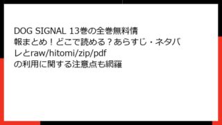 DOG SIGNAL DOG SIGNAL 3巻はraw/hitomi/zip/pdfで読める?全巻無料でどこで読めるか、あらすじ&ネタバレも最新情報チェック