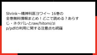 Shrink~精神科医ヨワイ~ Shrink~精神科医ヨワイ~ 4巻全巻無料で読むには?どこで読めるか徹底調査|あらすじ&ネタバレ・raw/hitomi/zip/pdfの危険も暴露