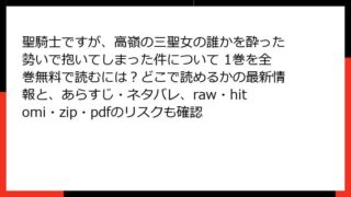 聖騎士ですが、高嶺の三聖女の誰かを酔った勢いで抱いてしまった件について 聖騎士ですが、高嶺の三聖女の誰かを酔った勢いで抱いてしまった件について 1巻を全巻無料で読むには?どこで読めるかの最新情報と、あらすじ・ネタバレ、raw・hitomi・zip・pdfのリスクも確認