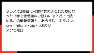 クラスで2番目に可愛い女の子と友だちになった クラスで2番目に可愛い女の子と友だちになった 5巻はraw/hitomi/zip/pdfで読める?全巻無料でどこで読めるか、あらすじ&ネタバレも最新情報チェック