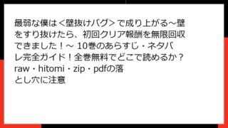 少年マンガ・コミック 最弱な僕は<壁抜けバグ>で成り上がる~壁をすり抜けたら、初回クリア報酬を無限回収できました!~ 10巻のあらすじ・ネタバレ完全ガイド!全巻無料でどこで読めるか?raw・hitomi・zip・pdfの落とし穴に注意