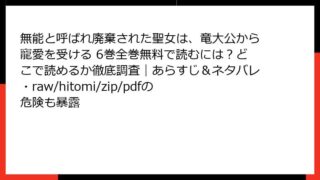 女性マンガ・コミック 無能と呼ばれ廃棄された聖女は、竜大公から寵愛を受ける 1巻はどこで読める?全巻無料の方法・あらすじ・ネタバレとraw/hitomi/zip/pdfの違法性も比較調査