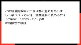 この極道調教中につき この極道調教中につき 4巻の魅力をあらすじ&ネタバレで紹介!全巻無料で読めるサイトやraw・hitomi・zip・pdfの危険性も検証 悪女は砂時計をひっくり返す【タテヨミ】 104巻の詳細なあらすじこの巻は、物語の本編が感動的に締めくくられる最終回を迎えます。アリアの成長と恋愛が頂点に達し、未来への希望が描かれます。以下で、主要な出来事とキャラクターの心理を詳しく解説しま... 2026.01.08 この極道調教中につき女性マンガ・コミック