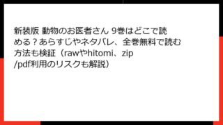 新装版 動物のお医者さん 新装版 動物のお医者さん 9巻はどこで読める?あらすじやネタバレ、全巻無料で読む方法も検証(rawやhitomi、zip/pdf利用のリスクも解説)