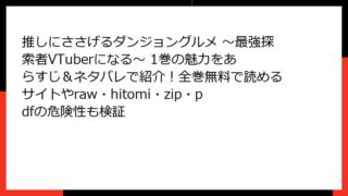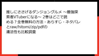 少年マンガ・コミック 推しにささげるダンジョングルメ ~最強探索者VTuberになる~ 2巻はどこで読める?全巻無料の方法・あらすじ・ネタバレとraw/hitomi/zip/pdfの違法性も比較調査
