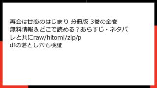 再会は甘恋のはじまり 分冊版 2巻のあらすじ詳解この記事では、藤代香澄による人気ロマンス漫画「再会は甘恋のはじまり」の分冊版2巻に焦点を当てて、詳細なあらすじを解説します。離婚後の女性が再会を通じて新たな恋に目覚めるストーリーが魅力です。ネ...