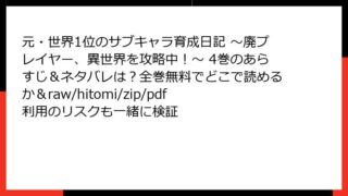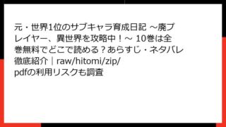 元・世界1位のサブキャラ育成日記 ~廃プレイヤー、異世界を攻略中!~ 元・世界1位のサブキャラ育成日記 ~廃プレイヤー、異世界を攻略中!~ 10巻は全巻無料でどこで読める?あらすじ・ネタバレ徹底紹介|raw/hitomi/zip/pdfの利用リスクも調査