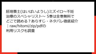 胚培養士(はいばいようし)ミズイロ~不妊治療のスペシャリスト~ 胚培養士(はいばいようし)ミズイロ~不妊治療のスペシャリスト~ 5巻は全巻無料でどこで読める?あらすじ・ネタバレ徹底紹介|raw/hitomi/zip/pdfの利用リスクも調査
