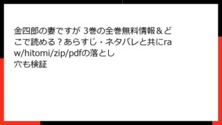 少年マンガ・コミック 金四郎の妻ですが 3巻の全巻無料情報&どこで読める?あらすじ・ネタバレと共にraw/hitomi/zip/pdfの落とし穴も検証 FAIRY TAIL 100 YEARS QUEST 2巻のあらすじ新たな冒険の幕開けナツたちは伝説の100年クエストに挑むため、ギルティナ大陸へ到着する。そこでは不思議な現象が起こっており、街の人々が水神竜の影響を受けていることが判明する... 2026.01.13 少年マンガ・コミック金四郎の妻ですが
