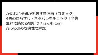 かたわれ令嬢が男装する理由(コミック) かたわれ令嬢が男装する理由(コミック) 4巻のあらすじ・ネタバレをチェック!全巻無料で読める場所は?raw/hitomi/zip/pdfの危険性も解説 Berry’sFantasy悪女のレッテルを貼られた追放令嬢ですが、最恐陛下の溺愛に捕まりました 1巻 この漫画のあらすじを詳しくBerry’sFantasyシリーズの新作として注目を集める本作は、悪役令嬢の烙印を押されたヒロインが、追放さ... 2026.01.14 かたわれ令嬢が男装する理由(コミック)女性マンガ・コミック