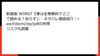 少年マンガ・コミック 新装版 WORST 5巻は全巻無料でどこで読める?あらすじ・ネタバレ徹底紹介|raw/hitomi/zip/pdfの利用リスクも調査