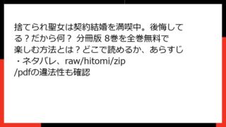 少女マンガ・コミック 捨てられ聖女は契約結婚を満喫中。後悔してる?だから何? 分冊版 8巻を全巻無料で楽しむ方法とは?どこで読めるか、あらすじ・ネタバレ、raw/hitomi/zip/pdfの違法性も確認