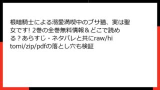 根暗騎士による溺愛満喫中のブサ猫、実は聖女です! 9巻のあらすじ詳細この人気ファンタジーコミックシリーズの9巻(または第9話相当)では、聖女ティアナのブサ猫生活がさらに深みを増し、根暗騎士イシスとの関係が新たな展開を迎えます。呪いの謎、恋心...