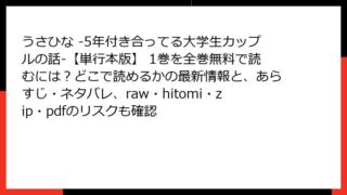 うさひな -5年付き合ってる大学生カップルの話-【単行本版】 うさひな -5年付き合ってる大学生カップルの話-【単行本版】 1巻を全巻無料で読むには?どこで読めるかの最新情報と、あらすじ・ネタバレ、raw・hitomi・zip・pdfのリスクも確認