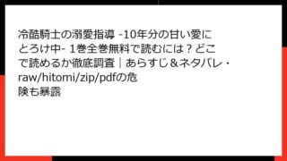 冷酷騎士の溺愛指導 -10年分の甘い愛にとろけ中- 1巻のあらすじこの記事では、人気コミック「冷酷騎士の溺愛指導 -10年分の甘い愛にとろけ中-」の1巻について、詳しいあらすじをブログ形式でお届けします。ファンタジーとロマンスが融合した魅力...
