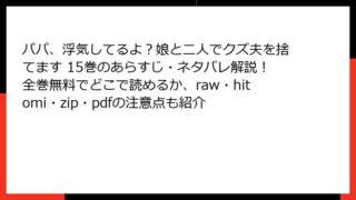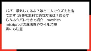 パパ、浮気してるよ?娘と二人でクズ夫を捨てます パパ、浮気してるよ?娘と二人でクズ夫を捨てます 18巻を無料で読む方法は?あらすじ&ネタバレ付きで紹介|raw/hitomi/zip/pdfの違法性やウイルス被害にも注意