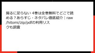 撮るに足らない 撮るに足らない 4巻は全巻無料でどこで読める?あらすじ・ネタバレ徹底紹介|raw/hitomi/zip/pdfの利用リスクも調査 撮るに足らない 4巻の詳しいあらすじ物語の全体像と前巻からのつながり「撮るに足らない」は、金欠で自堕落な女子大生・丹川と、彼女に密かなエロい視線を向ける軽音サークルの後輩・須藤を中心に描かれるコメディタッチのラブストーリーです。シリーズの基... 2026.01.26 撮るに足らない青年マンガ・コミック