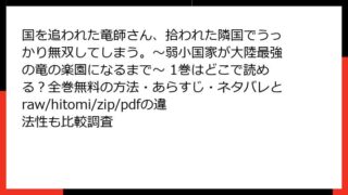 国を追われた竜師さん、拾われた隣国でうっかり無双してしまう。~弱小国家が大陸最強の竜の楽園になるまで~ 国を追われた竜師さん、拾われた隣国でうっかり無双してしまう。~弱小国家が大陸最強の竜の楽園になるまで~ 1巻はどこで読める?全巻無料の方法・あらすじ・ネタバレとraw/hitomi/zip/pdfの違法性も比較調査